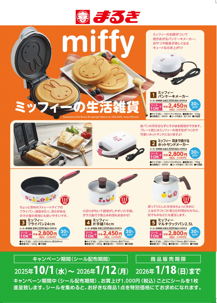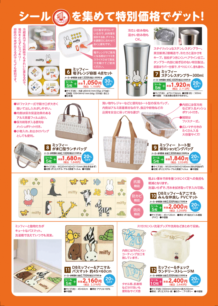 シールを集めてmiffyの生活雑貨を特別価格でゲットしよう!。