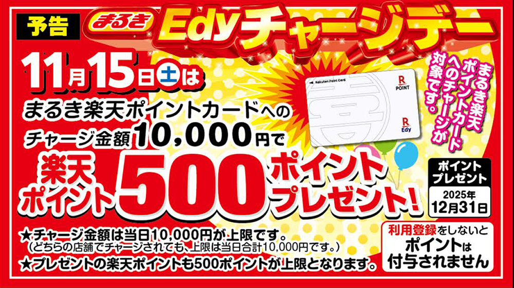 ”とてもお得で毎回ご好評いただいている“チャージデー”11月の開催日は 15日(土) です!