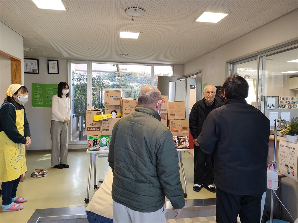 1月26日(月)、山陽小野田市内の福祉施設3箇所へ、節分に合わせて豆、お菓子、そしてパックジュースの寄贈を行いました。地域の皆さまへの日頃の感謝と、季節行事を楽しんでいただきたいという思いを込めてお届けしました。