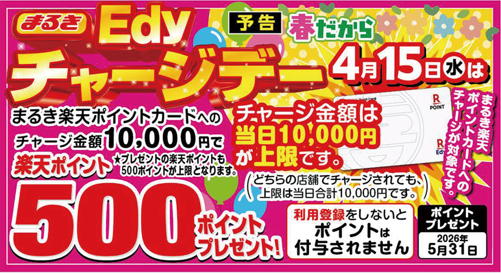 4月15日(水)は春だからチャージデー!